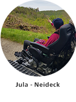 … Mit der Moderatorin Ulla Nickola, von BR2, wanderte ich eine kurze Strecke, damit Sie mal einen Eindruck davon bekommt, was das DNSYS X1 Freizeit-Exoskelett so vermag. Am Anfang war sie sehr skeptisch, fast schon ängstlich … sie dachte sie wird gleich „fremdbestimmt“ und hat keinen Einfluß mehr auf ihre Beine. Doch diese Angst muss niemand haben. Die Kraftentfaltung ist sehr sanft und passt sich Euren bewegungen an. Eine KI analysiert Euren Schritt und gibt dann die gewählte Unterstützung hinzu … „Wie ein E-Bike für die Beine!“